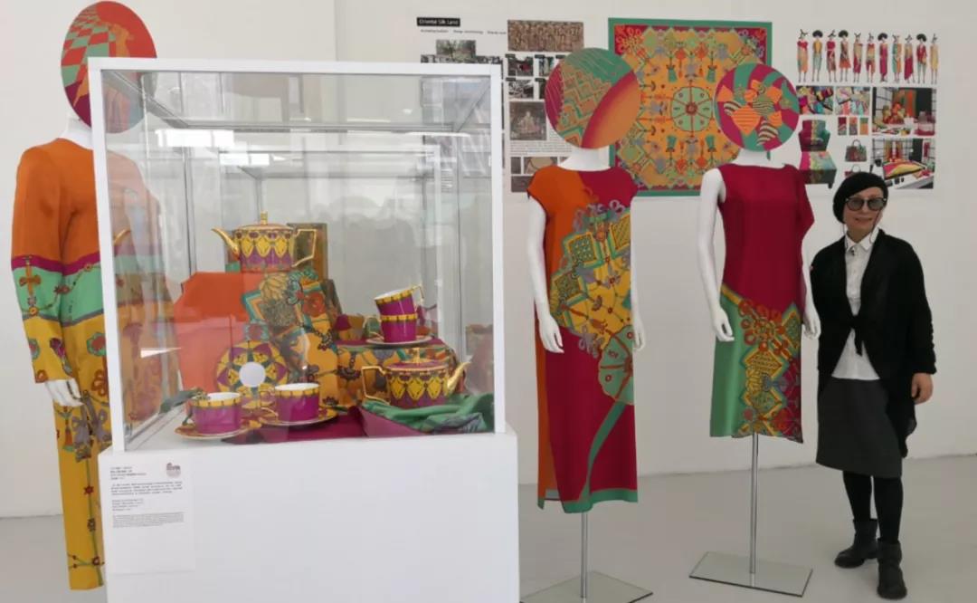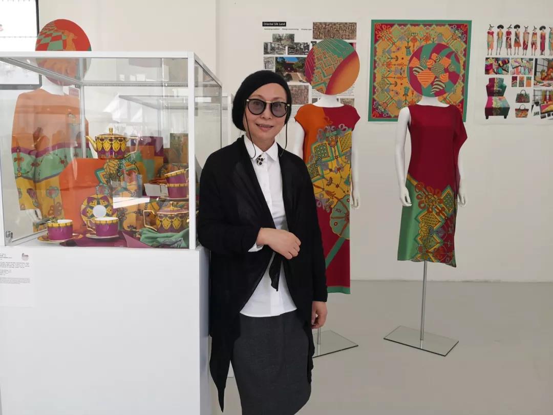在三十余年的设计生涯中,吴海燕一直致力于将东方精神与传统活化在时尚中,在国际国内舞台上始终用利用中国元素,展现中国味道,传递东方范式。此次展览展出吴海燕教授的「东方盛世」系列产品设计,其创作灵感源于中国明代法海寺的壁画。吴海燕通过对精美壁画中古典图案的探究,创意创新,设计用物,以今日时尚之本、之形、之色、之理,载以数千年的中国丝与瓷的两大重要元素,通过礼品形制、图案与工艺将中国文化活化于其中,践行和推动具有设计东方特色的生活。