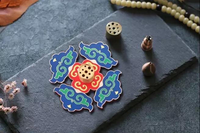 香盘采于藏式建筑中最常见的色彩,用的是康熙和雍正帝都最爱的珐琅彩制作工艺。工艺复杂,却呈现出艳丽而纯净的色泽,精致而吸睛。